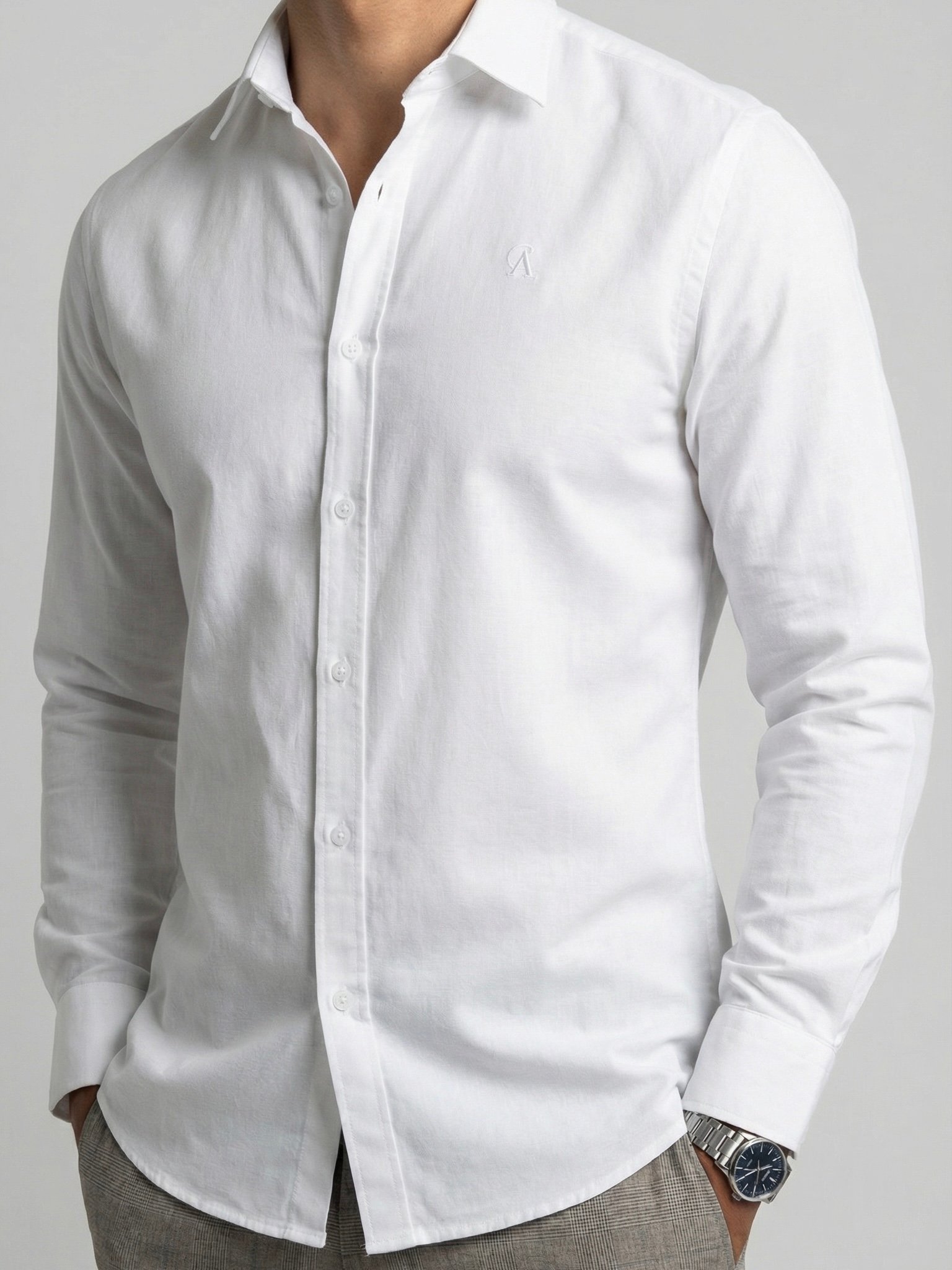 Camisa con cuello francés, confeccionada en Oxford ligero de algodón Pima, elemento imprescindible del armario masculino. Perfecta tanto para un look relajado como para una ocasión elegante.